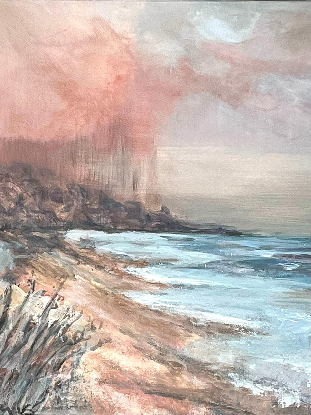 Sandi Maddox paints soft abstracted landscapes which capture the ‘essence of place’.Her studio, under a large oak tree facing the Eastern Ranges of the South Wairarapa, New Zealand is a natural place to observe and absorb her surroundings.Paintings are inspired by the weather, geography and the seasons in this part of the world. Before beginning a painting there are walks and time spent in the landscape, being fully present and practicing a simple grounding meditation.The painting it’s self is intuitive, responding to marks and colours as they are placed on the canvas.Sandi was born in Lancashire, England and emigrated to New Zealand in 2005 where she has been fascinated by the landscape. Sandi has studied at UCOL, The Learning Connexion and has recently completed online studies “The Year Long Landscape” with Newlys Art School, Cornwall. Enabling her to revisit another favourite coastline.Sandi is a founding member of Greytown Art Gallery and has exhibited in the Wairarapa since 2018. Sandi’s work is held in private collections in the USA, Canada, Australia, the UK and Europe.